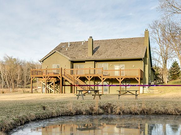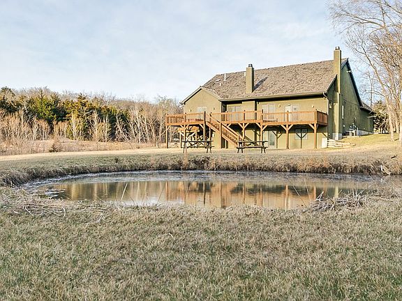 Amazing Custom built home in one of the most serine settings in Lawrence Kansas. Large lot backs to woods, green space, spring fed pond and abundant wildlife and nature. Interior includes a fantastic chefs kitchen with upgraded Wolf appliances, & a 6 burner gas stove. Home has custom trip and molding, solid wood six panel doors through out, and natural native limestone fireplaces. Wide open spaces perfect for entertaining and one level living. If you enjoy craftsman style and quiet setting, but still in town, this is the home for you.