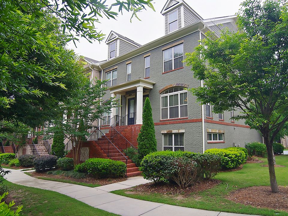 Stunning end unit flooded with light. Beautifully constructed home has many special features including high ceilings, moldings, hardwood floors and more. Cook's kitchen has island, double ovens, separate cooktop, and is open to living area. Separate dining room. Three separate bedroom suites, each with private bath. Master has tray ceilings and gorgeous master bath. Tons of closets throughout the home. Two car garage and charming balcony off the great room. Laundry room upstairs includes washer and dryer. Stable gated community has gorgeous pool and lush landscaping.