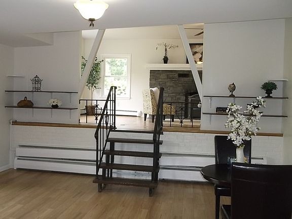 Beautiful apartment in a 100 year old farmhouse in Danby with a private back patio entrance. Cool and quiet, facing a creek with the White Hawk EcoVilliage in the distance. The living spaces are huge and bright, with an eat in kitchen with french doors to patio and expansive main room with a ceiling fan and stone hearth. Modern kitchen appliances, updated lighting, new furnace, freshly painted and ready to move in now. 5 minute drive to downtown and in the Ithaca School District. Two driveways with plenty of parking, electric, water and garbage included. Tenants pay gas and cable/internet. Non smoking and pets considered on an individual basis with a deposit.