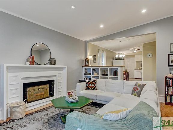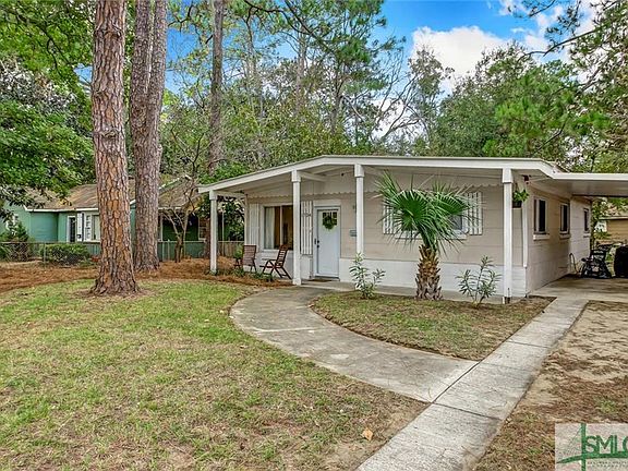 Darling Mid-Century modern home tucked away on a dead-end street. From the charming front porch and functional side carport to the clean modern lines, this home is the perfect mix of form and function! Bright living room with fireplace and vaulted ceiling leads to cozy dining area. Fully equipped kitchen with tall cabinets and plenty of counter space. Utility room just off kitchen opens to back yard. Three bedrooms and one full bath round out the inside of this home. The wrap around back yard offers plenty of shade and there's even a lemon tree! Super convenient location offers easy access to Downtown, Truman Parkway and the Skidaway/Victory shopping corridor.