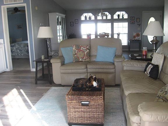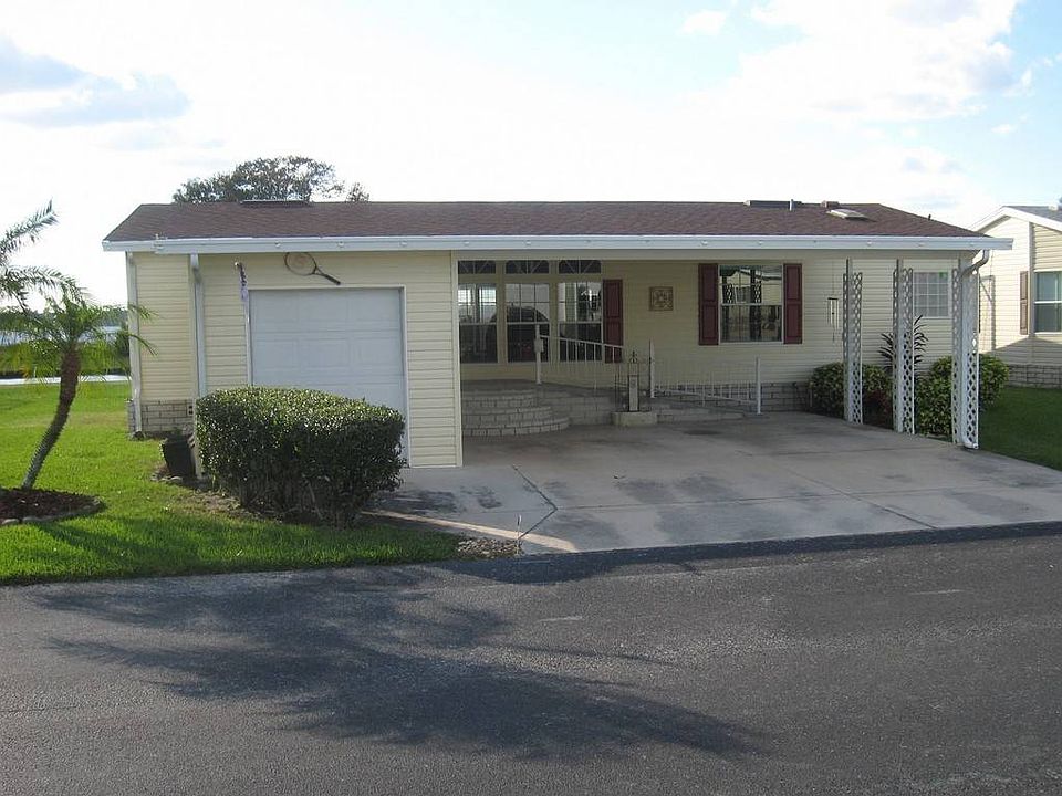 BIG REDUCTION...Gorgeous Home...Phenomenal View!............Gorgeous Home....Phenomenal View!! This beautiful Partially Furnished home is located in Four Lakes, a 55 plus gated community with homes on lot leased land. Here you own the home, but not the land. Your monthly lot rent gives you and your guest access to the amenities of the community. Awesome features:..... Three bedrooms, two baths..... Tape and texture..... Dining room..... Eat-in kitchen..... Beautiful water proof vinyl plank floors (living room, dining room, kitchen and hallway)............ You will fall in love with this home and its magnificent views the moment you walk in the door!............ Two sets of French doors...located in the living room and kitchen, lead to the extra large (10' x 30') screened Florida room where you can relax and enjoy the view of the golf course, pond and beautiful Lake Haines...... The sunsets are unbelievable!!............ The large eat-in kitchen has plenty of counter space and cabinets and all appliances are included. ............ The master bedroom has a large walk-in closet and the master bath features his and her sinks, an oversized step-in shower and another large closet!............ The extra wide drive leads to the 12' x 10' golf cart garage and yes, the golf cart is included. This home is also handicap accessible............. The pictures will give you a taste of how lovely this home is but this is one of those homes that has to be seen to be totally appreciated. You will not be disappointed!
