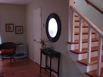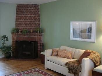 Charming two story garden condo in a four unit building with sunny eat in kitchen and a corner fireplace in the living room.