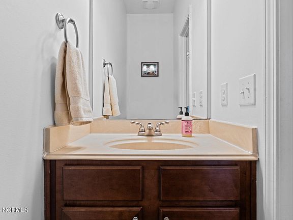 Welcome to Carolina Trace, where this stunning home awaits you. Step inside to discover a spacious open living area, complete with a cozy fireplace, seamlessly flowing into the dining room and kitchen boasting stainless steel appliances, granite countertops, a pantry closet, and ample cabinet space. Adjacent to the kitchen lies a first-floor master suite, one of two in this home, featuring a luxurious ensuite with dual sinks, a soaking tub, a walk-in shower, and a generous walk-in closet. Journey upstairs to find the second master suite, also with an ensuite offering a walk-in shower and spacious closet. The second floor also includes an additional bedroom, full bathroom, and flexible space perfect for a bedroom, living room, or playroom. Completing the picture is an unfinished attic space on the third floor. Outside, a revamped deck area, firepit, fully fenced backyard, and two-car garage await. This home has a whole-home filtration system installed in 2021. Beyond the confines of this exquisite home, residents can enjoy the community saltwater pool, tennis, and pickleball courts. This residence epitomizes the ideal combination of comfort, functionality, and community living.
