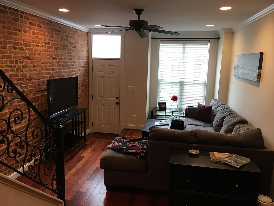 OPEN HOUSE - Sunday, 3/31, 11a-1p! Rarely available, completely renovated 2BR/1.5B townhouse with Parking Pad! Available May 1st! Open floor plan lower level featuring cherry hardwood floors, exposed brick, custom wrought iron railings, half-bath & more. Eat-in kitchen with stainless steel appliances & granite countertops. Second floor features 2 BR, full bath, stacked washer/dryer & deck for entertaining. Large basement for storage. Walking distance to Riverside Park, Federal Hill and Inner Harbor. Enjoy the convenience of shopping at Southside Marketplace (Shoppers, Chipotle, Starbucks, & more) and McHenry Row (Harris Teeter, Iron Rooster and more). Easy access to I-95, I-295, BWI airport & more. Pets are welcome with additional security deposit on a case-by-case basis. $2200/month + utilities. Discount offered for extended lease (2 or more years). Contact Eric Norris, 484-995-3024 (call/text) for showing. Tenant responsible for water, gas & electric.