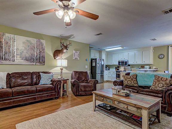 So rare in Clinton -- 2.6 acres +/- WITH C-Spire wireless internet! Quiet, country setting with a little pond out front to enjoy. 3/2 split plan with open kitchen/dining/living area and side-entry garage. Nice sized master bedroom with two walk-in closets. New pole barn to park your extra vehicle, RV or boat. Enjoy watching the deer while relaxing on your covered patio.