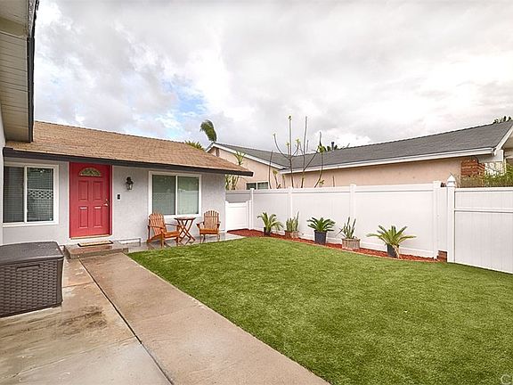 Gorgeously renovated single-level Anaheim home with a spacious front and backyard has several fresh features ready for the next lucky owner. Upon entering into the light and bright living room you'll notice an inviting open concept seamlessly shared with the formal dining room. The expansive kitchen has been tastefully remodeled to incorporate a beautiful breakfast nook, spotless marble counters, multi-colored glass tile backsplash, modern white cabinets, stainless steel appliances and wood-style tile floor. The kitchen wainscoting stylishly compliments the French doors leading to the fully renovated backyard. It features low maintenance landscaping, 16 year warranted artificial grass and stunning new granite stone hardscaping with a bulit in BBQ. The fabulous ambient overhead string lighting allows you to host only the best gatherings all day and night. As you make your way down the hall, the master bedroom features an en-suite full bathroom. The secondary bedrooms are generously sized and share an additional full bathroom with beautiful granite counters and a built-in, above counter ceramic sink. Convenient two-car direct-access garage with an extended driveway for added parking. Highly efficient Solar Panels to keep energy costs low and of course...Located in the award winning PYLUSD schools!