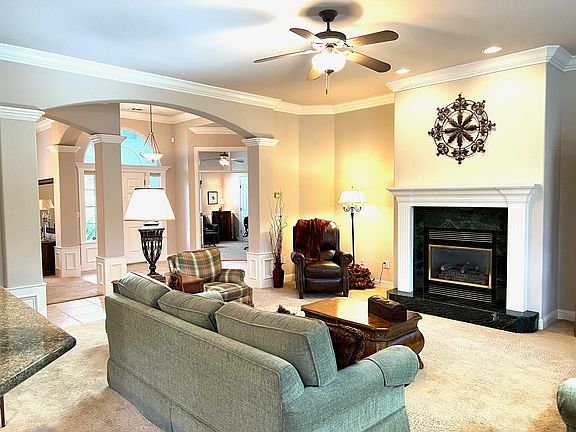 Short cul-de-sac setting facing the 10th green & lower part of 10th fairway yet private because of tiered landscaping design. 2 yr-new roof, new exterior paint, newer AC/HT system. Enjoy this split floorplan featuring main bedroom suite & bdrm/office on 1 end and what could be an in-law set-up on the north side with a step-in shower located between 2 good-sized bedrooms. Kitchen is loaded with cabinets, pull-outs. wine refrigerator, and island sink, all under large granite slabs. High ceilings & large windows bring this beautiful natural golf setting into a great room floorplan. Larger furniture welcomed in main bedroom & the rest of the home which also has many display areas. Main bath has a large step-in shower and separate bathing area. U see, U like--you won't be disappointed! CB102