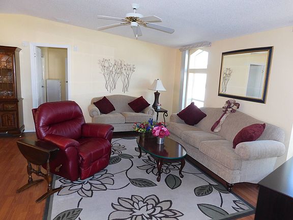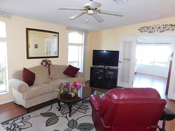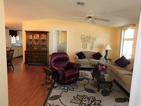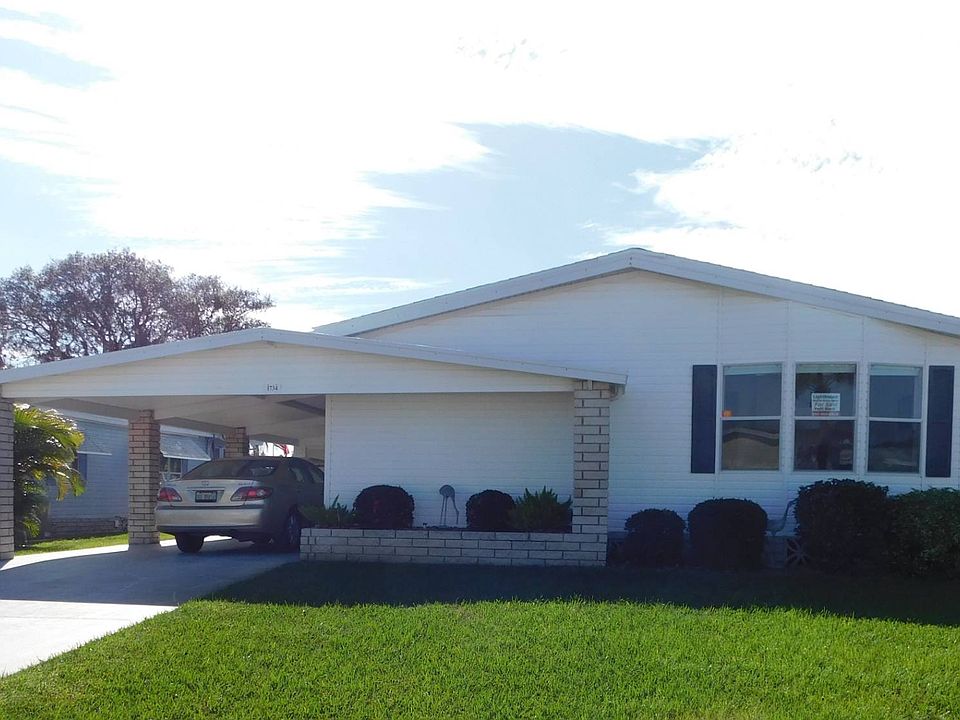 This stylish turn-key residence is nestled in the highly desirable age-qualified community of Tanglewood. Boasting 3 bedrooms, 2 baths, high quality furnishings, screened lanai, covered patio, lakefront lot with amazing views, and golf cart garage, you're sure to be impressed. The spacious living room is light and bright and opens directly to the dining and kitchen areas. It's the perfect arrangement for entertaining! Spending time in the kitchen will be a joy! There is ample cabinetry, sprawling counter space, new refrigerator, dishwasher and sink, faucet, garbage disposal in 2022 , microwave, and range in 2019. There is also a separate laundry closet with a newer full-size washer and dryer.in 2019. As you enter the master bedroom you immediately feel the serenity. Not only is the bedroom spacious, but it also includes a fully renovated en suite . Both guest bedrooms are large, provide abundant closet space and share a guest bathroom with a newer toilet, new sink, and tub/shower combo. One of the bedrooms also has a built-in desk and large bay window. This sunny room would also make the perfect office, art studio, or library. The beautifully appointed screened lanai is perfect for enjoying your favorite book, relaxing with your feet up enjoying the miniature sailboat races, or watching the sunset over the tranquil lake. The attached covered patio provides additional space for hosting a BBQ or enjoying the beautifully landscaped lakefront lawn. The home has a new shingled roof, new lanai screening, new pan roof and gutters/ downspouts . The entire home has new low e double pane windows in 2022. New hot water heater in 2023. All new vinyl siding in 2023. The driveway and lanai have been tastefully resealed in 2023. Most of ceilings and walls have been resurfaced and painted in 2023. Do as little or as much as you would like in this much sought after gated community of Tanglewood, all for only approximately $1050 per month lot rent. Call today to schedule a tour. *All listing information is deemed reliable but not guaranteed and should be independently verified through personal inspection by appropriate professionals. Listing company cannot guarantee or warrant the accuracy of this information or condition of the property. The buyer assumes full responsibility for obtaining all current rates of lot rent, fees, and pass-on costs. Additionally, the buyer is responsible for obtaining all rules, regulations, pet policies, etc., associated with the community, park, or home from the park manager.