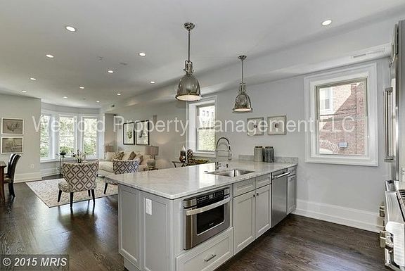 This building is Ross Flats, a stunning boutique building in Dupont that was completely renovated in September 2015! This apartment features 2 Bedroom/2 Bath and is 1330 square feet. The unit boasts espresso-colored hardwood floors, custom moldings, recessed lighting, iPad smart home tech, electronic doorman, Carrara spa baths & Chef's kitchen with a massive island and plenty of storage! Top-of-the-line finishes and appliances, built-in surround sound system, central heating and cooling with Nest thermostat, a large washer and dryer in the unit, and very spacious closets. There is a private balcony and private, gated / garage door parking space. Dupont Circle, a grand hub and vibrant center for urban and cultural life in DC, is a short five minute trip away, and the historic Ross Elementary is adjacent to this building. Move in available September 1st 2017 so inquire today! Contact us to schedule a showing.