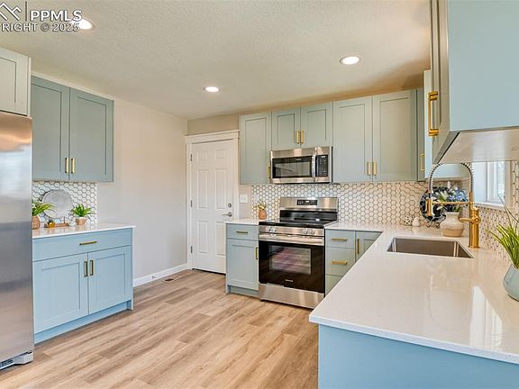 Experience modern living at its finest in this extensively renovated Colorado Springs gem! This awesome home has been transformed into a stylish haven with a contemporary touch. Step inside and be greeted by new flooring, fresh paint, and modern trim throughout the entire property. The renovated kitchen is a standout feature, boasting sleek countertops, a chic backsplash, and new appliances that make cooking a joy. The primary bedroom is amazing. Huge, new Bath, huge walk-in closet, fireplace and sliding door to the back patio. Entertain guests effortlessly in the open concept living area, seamlessly connected to the kitchen. Downstairs, a wet bar in the basement provides the perfect space for relaxation and gatherings. The home backs up to a beautiful, paved running trail. Convenience is key, with a one-car garage featuring an automatic door opener for easy parking. The property has been thoughtfully landscaped, with a freshly landscaped front yard and a fenced backyard for outdoor enjoyment. This home comes complete with all-new kitchen appliances for your convenience. In summary, this property offers a turnkey, contemporary living experience. With its modern upgrades and tasteful design, it's ready for you to move right in. Don't miss the chance to make it your own—schedule a viewing today!