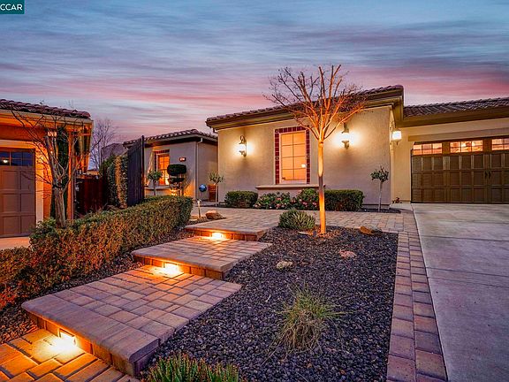BOM through no fault of Seller or property. 55+ Resort Living in Trilogy. This Property is Peacefully Tucked in the Back of the Street w/Private Paved Entrance and a Lovely Large Yard w/Dedicated & Private Spa Area off Primary Bedroom, Builder Overhang w/Remote Awning, Private Patio w/Gas Fireplace, Built-in BBQ w/Electricity/Fridge & Seating Area. Dedicated Planting Area/Fruit & Citrus Trees, Multiple Paver Walkways, Tiered Area w/Rock Retaining Wall Additional Patio Area at Side and a Dedicated Pet, Gated Area w/Faux Grass & Shade Umbrella. Upgraded Tile & Wood Floors, Ceiling Fans, Gourmet Kitchen w/Upgraded Cabinets, Upper Lighted Glass Cabs at Top, Lg. Primary Bedroom w/Access to Spa Area, Office w/French Doors, Built-in Cabinets & Shelves. Guest Bedroom Ensuite & 1/2 Bath. Gorgeous Clubhouse, Cafe, Event Center, Indoor & Outdoor Pools, Spa & Gym Facility On-site & Off-site Activities and much more