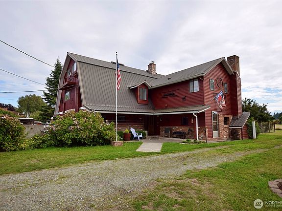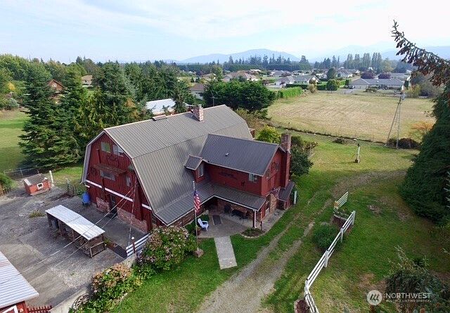 If you are a car collector, have horses or animals, want a small farm &/or love old farmhouses, this is the place for you. The milking barn was converted to a farmhouse, designed by Lingberg, in 1952. Much of the original barn was preserved, including some milking stanchions in the entry & mud room/bonus room. Fabulous 3840 Sqft barn has room for many cars, boats, RV's or animals. Main level has 2 entrances. Large main entry, office, family room with wet bar, large enough for a pool table, bedroom, scullery kitchen, mud room, large pantry area, 2, 3/4 baths & sauna. Upstairs has updated kitchen, living room, sunroom, porch, primary bed, bed 3, 2 baths, laundry. 3rd level has loft, 2nd primary bedroom. Stunning Mt view. 2 chicken coops.