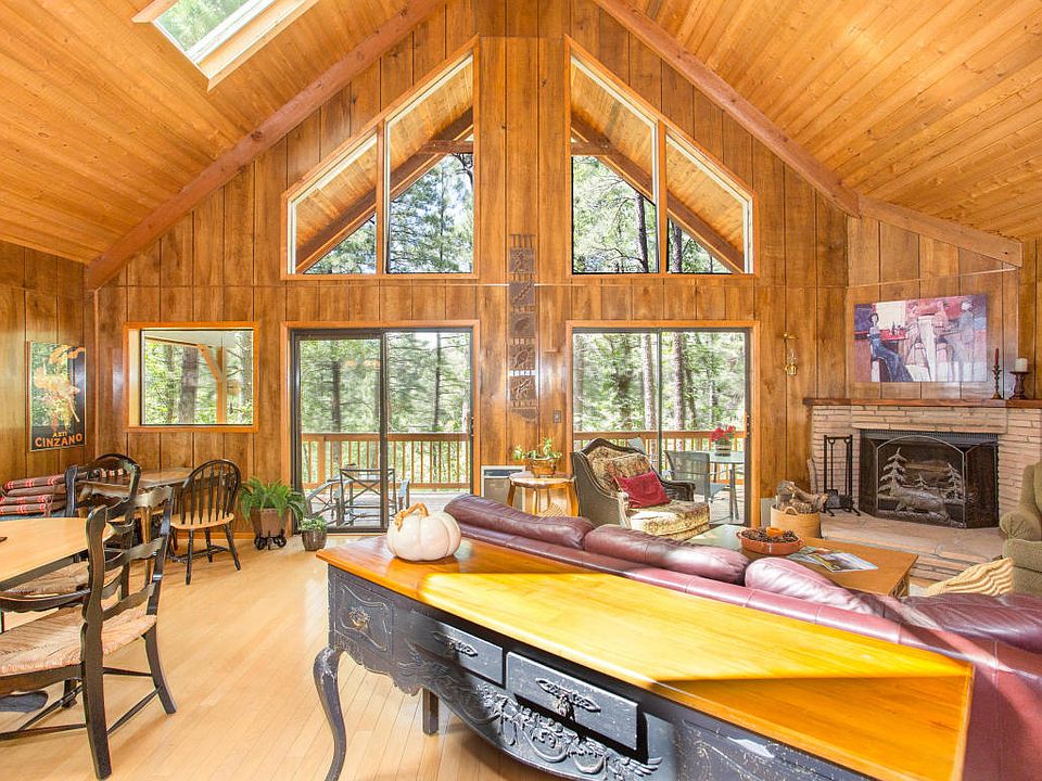 ESCAPE FROM IT ALL! This is a 1983 remodeled 3BD 2BA 1833sqft home with breathtaking views of Munds Canyon! Enjoy an abundance of light with the floor to ceiling windows & skylights for a Bright & Open floorplan with soaring Tongue & Groove vaulted ceilings! Wood Burning Fireplace keeps you cozy in the cooler months. Kitchen & Dining area open to the Living Room. Relax on the tranquil wrap-around deck (new in 2012). Great for morning coffee, relaxing with a good book, or entertaining friends! Master BD upstairs with full BA and Loft! Two additional guest BDs on the main level w/guest bathroom. Solid Wood Floors add to the warmth of this home; carpeted BDs. ALL APPLIANCES STAY for your convenience! Paver Driveway & Walkways to welcome your guests! Experience this beautiful home today!