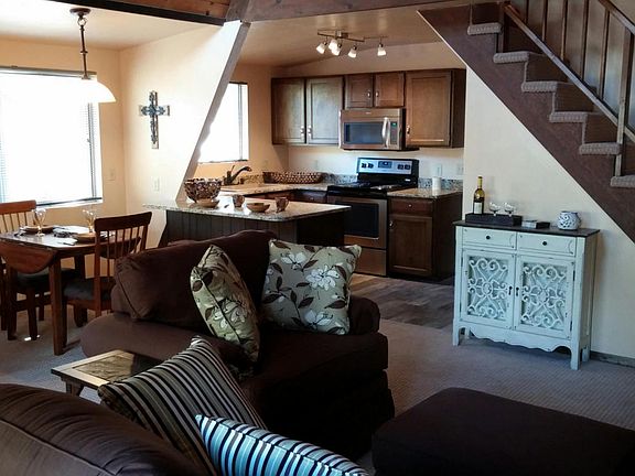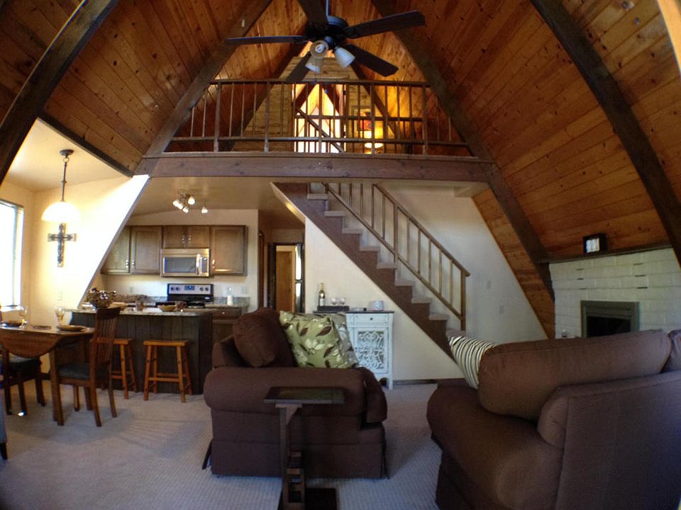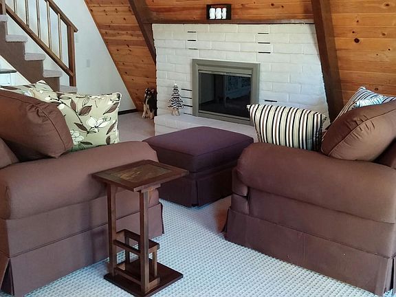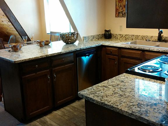 Remodeled, 2 bedroom cabin with small 3rd bedroom, 2 car garage on a large flat lot. New tile, carpet, paint, fixtures, and appliances. Electric wall heaters throughout cabin. Open kitchen, large living room with wood burning fireplace, master suite with bathroom, plus large upstairs bedroom. Plenty of covered decks for year round enjoyment. 2 car garage (with work bench) approx. 18' x 24'. Comes with a One Year Home Warranty. Owner agent.