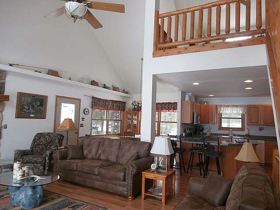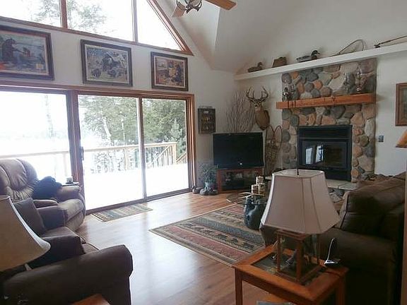 Beautiful setting on Horn Lake with 80' of sandy frontage. This well cared for home has 3+ bedrooms, an open concept kitchen, living room and dining room. Cozy wood burning fireplace, open staircase, loft sitting area and a wall of windows to enjoy the lake all year long! Full walk-out lower level awaits your finishing touch. Enjoy Horn Lake which also leads into Reservoir Pond, Little Horn and Explosion Lakes!