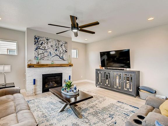 Welcome Home! Are you looking for a new build but don't want to wait -and- have all of the upgrades you could ever imagine? This is the home for you. Built in 2020, this designer's home has lots of upgrades in the interior of the home. Upon entering the home, you will be greeted with beautiful LVP floors, wall colors and light flooding in. Off to the left is a formal dining room for your family gatherings. When you walk into the Kitchen/ Family room area, you can tell nothing was held back in the amenities including: double ovens, all stainless steel appliances, 42 inch cabinets, Quartz counters, Farm house sink, 5 burner gas stove, extra-large refrigerator/freezer, custom built-in eating table with tons of storage, perfect for entertaining! The Family room has a designer built-in dry bar with wine fridge, 100 year old barn beam, custom mantle with gas fireplace and blower for those cold nights. Spend sunsets & evenings on the 14 ft patio overlooking the coveted open space w/ the incredible mountain views. If it gets a little hot, open up your brand new electronic awning with automatic wind sensor & solar shade controls. You have gate access on both sides to get to the backyard with lots of grass & room to play. Upstairs is the over-sized Master bdrm with gorgeous ensuite bathroom and views of the mountains! Upgraded lighting, ceiling fans & blinds are in every bedroom. Down in the basement is the 4th bdrm/ Flex room/ Exercise room. This home really does have it all & is close to many recreational favorites like Top Golf, shopping & entertainment. Less than 30 min to Boulder.