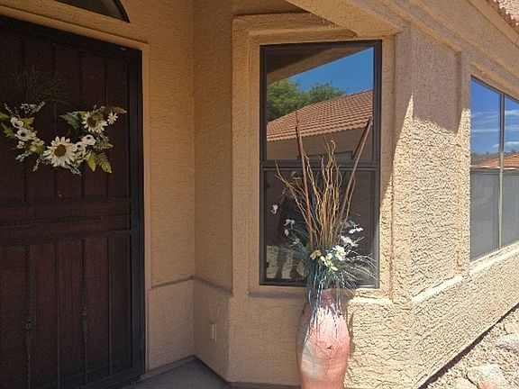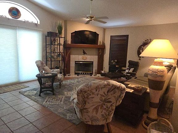 DO NOT APPLY ONLINE-CONTACT OFFICE FOR OFF SEASON AND/OR LONG-TERM RATES- Nicely furnished three bedroom Patio Home. Located in the Morning Side Community. Master suite with a king size bed with walk-in shower in bath. One bedroom set up as an office with a sofa sleeper and other bedroom has 2 twin beds. Living room has a propane fireplace. Large back patio that backs to greenbelt area. Has a garage with one parking space available. Community pool & spa. Walking distant to the Fountain Park.