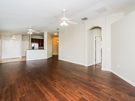 Check out this three-bedroom, two-bathroom Land O' Lakes rental home with a two-car garage. You'll enjoy the open floor plan, high ceilings, tall arched doorways, and beautiful vinyl plank flooring. The central HVAC system will keep you comfortable. Cooks will love the eat-in kitchen's warmly varnished cabinetry, black granite countertops, stainless steel appliances, and tile flooring. The living room offers lots of space and multiple overhead fans. You'll step through the room's sliding glass door for cookouts on the covered patio in the fenced backyard. In the master bedroom suite, you'll discover a walk-in closet and a private bathroom. Schedule your tour today.