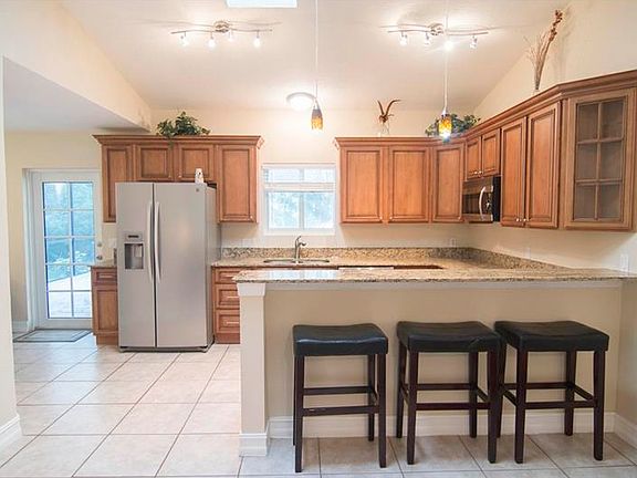 Beautiful pool home located in a quiet residential area surounded by nature and secluded in an oasis of tranquility, yet close to schools, shopping and restaurants! This well maintained home offers an open floor plan with vaulted ceilings and a large skylight for natural lighting. The kitchen boasts solid wood cabinets, stainless steel appliances and granite counter tops plus a large breakfast bar. Extra large master suite with french doors leading to the pool and lanai. The large pool area is ideal for entertaining with a big heated pool, beautiful pavers and an oversized pool cage. Queen size murphy bed in guest bedroom is included. Inside laundry room with wood cabinets and built-in ironing board. All windows and doors are hurricane rated, so no need for shutters. Completely renovated in 2011 including new kitchen, new bathrooms, new windows and doors, new siding and roof. A truly turn key home! Owner is licensed real estate agent.