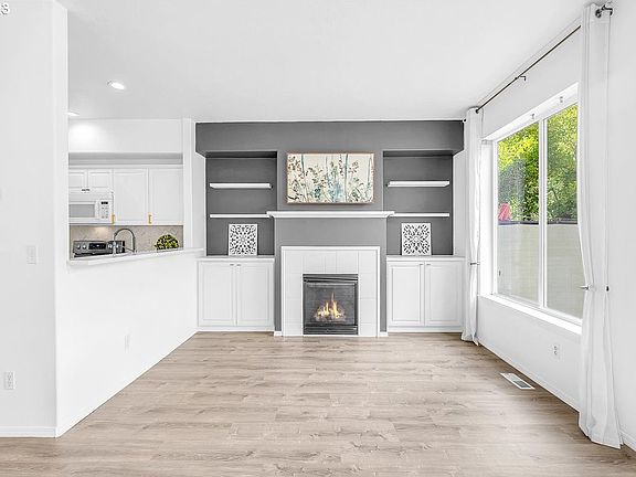 Nestled in the back, with greenspace views, this light & bright home is a 10! Upgraded finishes & designer touches throughout. Luxury Vinyl Plank flooring on both levels - no carpet!! Recently remodeled kitchen with high-end appliances (all included!), quartz counters & oversized undermount sink + a pantry! Open Living Room with custom built-ins and cozy gas fireplace. Enjoy the greenspace views from your sofa or step outside to your private, fully fenced patio with the feeling of being in a nature park. Back inside, a quiet nook with window seat provides versatility as dining or office space. The Upper floor boasts vaulted ceilings, a sunny hallway and a walk-in laundry room. The Primary Suite has plenty of space for a king size bed and features a ceiling fan, walk-in closet, soaking tub, separate water closet & stand up shower. Low HOA fee includes exterior maintenance, common landscaping + clubhouse with gym & pool. Nearby Recuerdo Park offers walking trails & space to play. This home is ready to be yours, don't miss your opportunity!