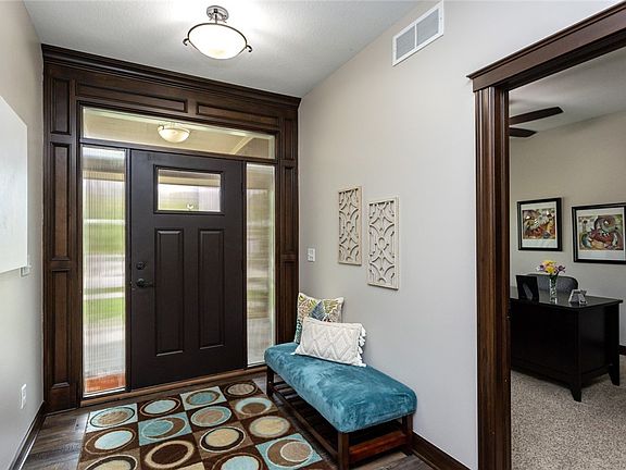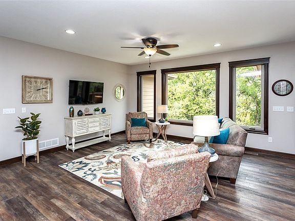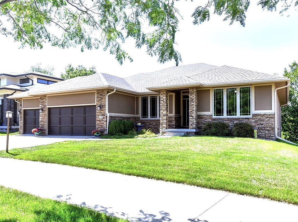 Beautiful Custom Built, 5 BR, 3 BA, 3,827 sq ft Ranch, 3 Car Garage, Lg Covered Deck, Patio, & Private Tree Lined Backyard in the Coveted Shadow Creek Neighborhood. Check out the freshly painted creamy light wall color! Lighter, brighter & move in ready! You will enjoy spacious open concept living with a large kitchen, custom cabinets, lots of counter space, island that seats six, pantry, nice dining area and family room, all with new LVP flooring & wonderful, oversized windows that frame the wooded backyard for privacy that is hard to find. The lot extends 71 ft into the trees to keep that privacy. XL Covered Deck with plenty of space to hang out, grill & enjoy the big game. The spacious primary suite has an amazing private view of the woods, an ensuite with two vanities, a makeup vanity, tiled shower, toilet room & large walk-in closet. You will love the XL laundry room, huge drop zone tucked out of sight, plus a closet for coats, shoes & more! Plus, two more bedrooms/office & a full bath. The Lg Walkout LL is built for fun! Enjoy movie night in the home theater, gather around the fabulous bar & watch your favorite sports, or game night in the spacious family room with large windows, a cozy fireplace and heated floors. Take it outside to the large patio for a bonfire. With the geothermal heating/cooling system, the energy cost from MidAmerican is only $108 p/m! Great dog walking, bike riding, chat with your neighbor kind of neighborhood! This is The One. Call Today!