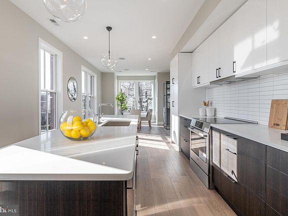 Bright and airy Logan Circle penthouse condominium in boutique, 4-unit building built in 2020. High-end finishes and appliances in like-new condition (single owner and occupant since construction). Open plan first floor perfect for entertaining with separate dining, kitchen and living spaces, stainless steel Bosch kitchen appliances, white quartz marble countertops, and adjacent half bathroom. Top floor with primary bedroom and en suite, all-marble double vanity bathroom, separate large guest bedroom/office and additional adjacent full bathroom, spacious closets outfitted with Elfa storage systems and full-sized Electrolux washer/dryer. 4'x12' motorized skylight hatch on top floor leads to large private roof deck with panoramic views of the neighborhood and Washington Monument. All rooms are flooded with south-facing natural light overlooking the beautiful French Street Park. One-car dedicated parking behind building with additional storage space and roll-up, wi-fi enabled garage door. Quiet location with wonderful neighbors on a peaceful one-way residential street, 5 minute walk to Logan Circle, 14th Street and U Street dining and retail, and Metro green/yellow lines (Shaw/Howard or U Street stops). Owner pays for water. Renter pays for electric and cable/internet (home wired for Comcast or Verizon)