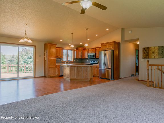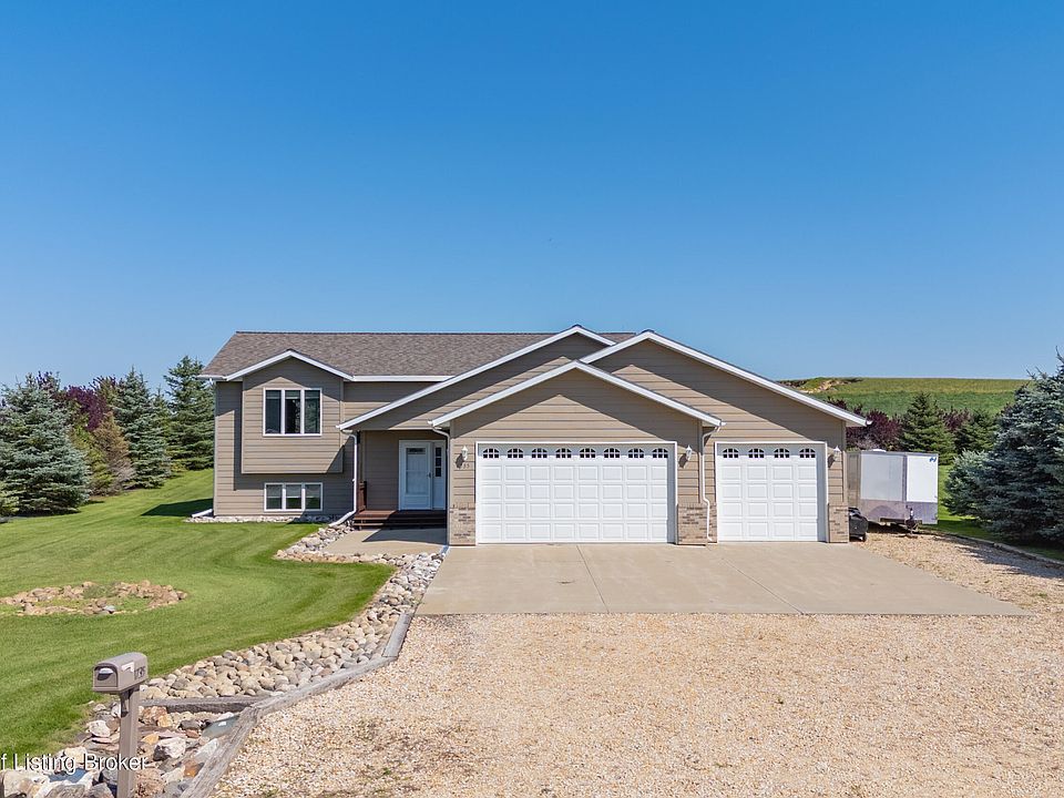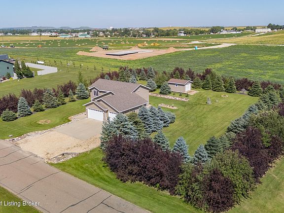 Must see, beautiful, and peaceful property on nearly one acre just minutes from Dickinson. This four bedroom, three bathroom home is move in ready, with an open layout and spacious design. From the large kitchen, dining, and living area filled with great natural light to the two bedrooms , including a wonderful primary suite there is an abundance of thoughtful space throughout. The lower level is fully finished with a spacious family room and fireplace, and two additional bedrooms. The triple garage is finished and heated. The exterior is an absolute tree lined dream with a deck, sprinklers, well, shed, and so much more. Call today to schedule a showing of this fantastic property!