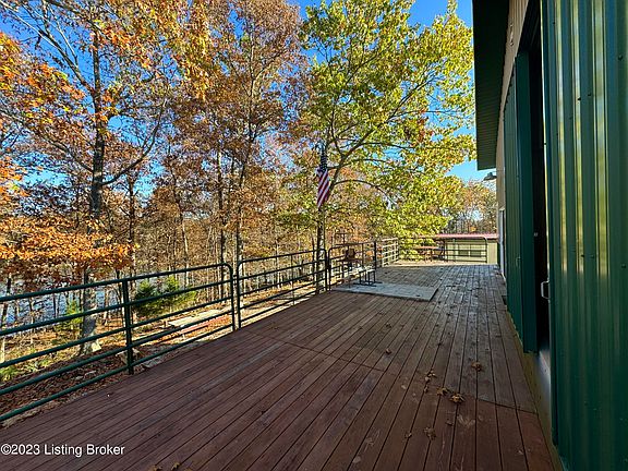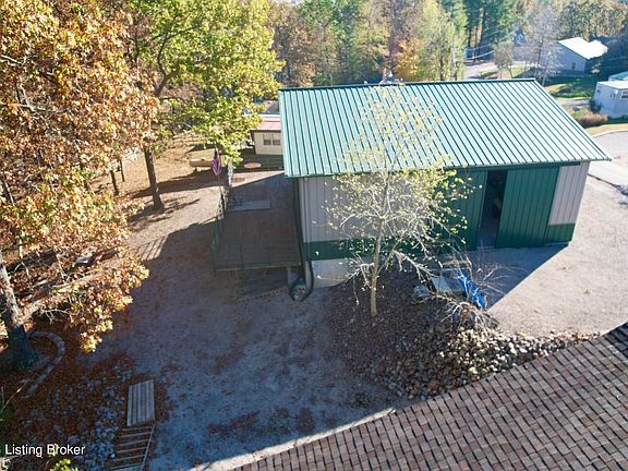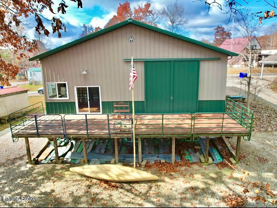 What a wonderful time of year to come take a walk thru this beautiful wooded Nolin Lake waterfront property with a boat dock near Moutardier Marina & Recreation area. This unique barndominium type property is a fabulous 42' X 40' Morton Building with a living space inside that comes complete with a kitchen area (sink, refrigerator, countertops (there is no stove), dining area, living room area also used as a bedroom and full bath. Walk out the sliding glass doors to a huge 42' X 12' heavy duty deck with amazing wooded lake views! Pull your RV right in thru the 12' doors and there is another 12' door that opens right up to that fabulous deck for a wonderful place to entertain your family and friends! Take a stroll down the hiking path on this property thru the woods to the boat dock or you can use the public golf cart driving path just a couple houses down to the boat dock. There is a convenient large gravel driveway that circles around the building for convenience and a community boat ramp in the neighborhood. There is a wonderful tankless water heater, mini split ductless heating & air system, & 200 amp service. For anyone with children, the school bus does come thru here. Wouldn't it be nice to relax, unwind, and get away from the city for a spell? This is one of the closest larger lakes to Louisville to make your get away very convenient! Come check out this wonderful lakefront property today!
