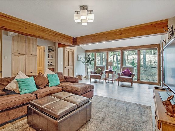 Serene mountain retreat just minutes from downtown Breckenridge. Nestled on a sunlit, forested parcel, this beautifully updated single-family home offers breathtaking views, timeless mountain charm, and effortless access to year-round adventure. Located on the free Summit Stage bus route and adjacent to open space, you’re minutes from the slopes, trails, and Breckenridge’s town center. Step inside to discover expansive floor-to-ceiling windows, flooding the home with natural light. The main level features two spacious living areas, a cozy gas stove, a well-appointed kitchen with stainless steel appliances, and a sunny dining space that opens to a private deck—perfect for morning coffee or après-ski relaxation. The upper level features room for everyone, with four bedrooms, including a bunk room and a spacious primary suite. Additional highlights include a new metal roof, covered entry, city water/sewer, dedicated laundry room, paved driveway, and a generous heated two-car garage with additional parking. Offered fully furnished, and with no transfer tax and no HOA fees, this home is turnkey and ready to enjoy. Whether hiking, biking, or skiing/snowshoeing miles of nearby singletrack trails, or simply soaking in the peace of your forested surroundings, this is mountain living at its best.