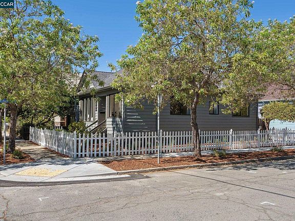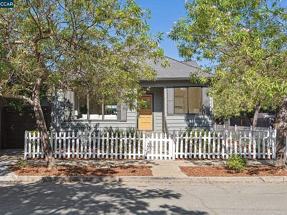 Nestled at the base of the Martinez hills, this picturesque neighborhood is full of shade trees, palms, rose bushes, and sweet historic bungalows. There is a lazy breeze, picket fences, and porch swings—you wonder why you haven’t looked here before. And this stately home, with its charming front and side gardens, fits right in. While the kitchen and baths have been completely renovated for modern ease, the vintage vibe remains throughout. High ceilings, tall windows, gorgeous wood floors and mouldings…the details from 1904 don’t disappoint. And the light: sun beams in and floods the rooms to create an airy, sophisticated feel. But the highlight is the new eat-in kitchen with its soft green cabinetry, gas range, fun retro tile flooring, new countertops, and stainless steel appliances. Across the hall, the primary bedroom with oversized closet and redone en-suite bath also dazzles, and looks out to the trees. Finally, a bonus room off the entry could be a perfect home office, third bedroom, or craft room, with a peaceful view of the front garden.