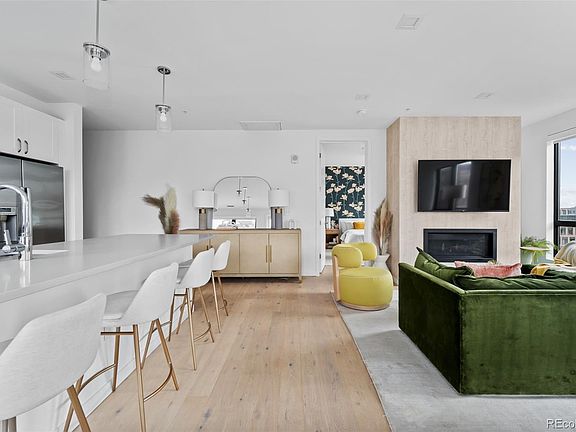 Located in the heart of one of Denver's best neighborhoods, Residence 401 offers elevated urban living within a high-end, boutique condo building. Conveniently situated on the Southwest corner of the building, this home offers both a quiet, peaceful oasis from lively LoHi, and is simultaneously your highly sought-after connection to some of the city's best restaurants, coffee shops, nightlife and parks. Cool tones of light engineered hardwood flooring, white-shaker style cabinetry and quartz countertops speak to a vision of modern luxury. Custom wallpaper accents surround the fireplace and add a pop of character to each bedroom. Enjoy a cup of coffee on the private patio, plumbed with a gas-line for a grill, overlooking the LoHi neighborhood or take that cup into the additional den at the front of the home that could act as a workspace or in-home gym. With two parking spaces and additional storage, this home is perfect for the urban city dweller that values living in the LoHi neighborhood, prefers quick access to I-25, but also aligns with spending quality time in a home akin to a serene sanctuary.