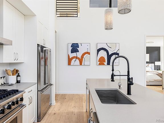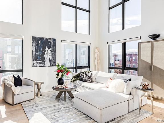 To simply say that Residence 501, poised on the top floor of The Edge LoHi, is an entirely "different animal" when it comes to urban, loft-style living, would be an understatement. With soaring 18' ceilings, and clear views of the cloud-line, it's often hard to imagine you're just 5 and 6 stories up from ground-level. A unique, split-level layout with a 6th floor mezzanine offers the benefit of living larger and more like a townhome than a single-story condo. The heart of the home opens to a bright and airy living room, with double height windows, custom electric blinds and a cozy gas fireplace. Entertaining comes easily in a kitchen equipped with Viking appliances, new Miele dishwasher, a wine refrigerator, and custom overhead pendant lighting. In each bedroom you'll find newly installed California Closet systems, with the charming primary bedroom suite flowing into a large bath featuring dual sinks, and a glass-enclosed porcelain tiled shower. Heading upstairs, a flex space is laid out for an in-home gym or guest suite, complete with a built-in Murphy bed, additional storage, and a wet bar. Views of the city and sky soar above you from your private, enclosed rooftop deck (plumbed with a gas-line for a grill and electricity to hook up that outdoor flat-screen tv). With 2 tandem parking spaces and additional garage storage for snowboards, skis and all your outdoor (or indoor) gear, Residence 501 is both your secret Penthouse "hideaway," and your life-line to LoHi and the city beyond.