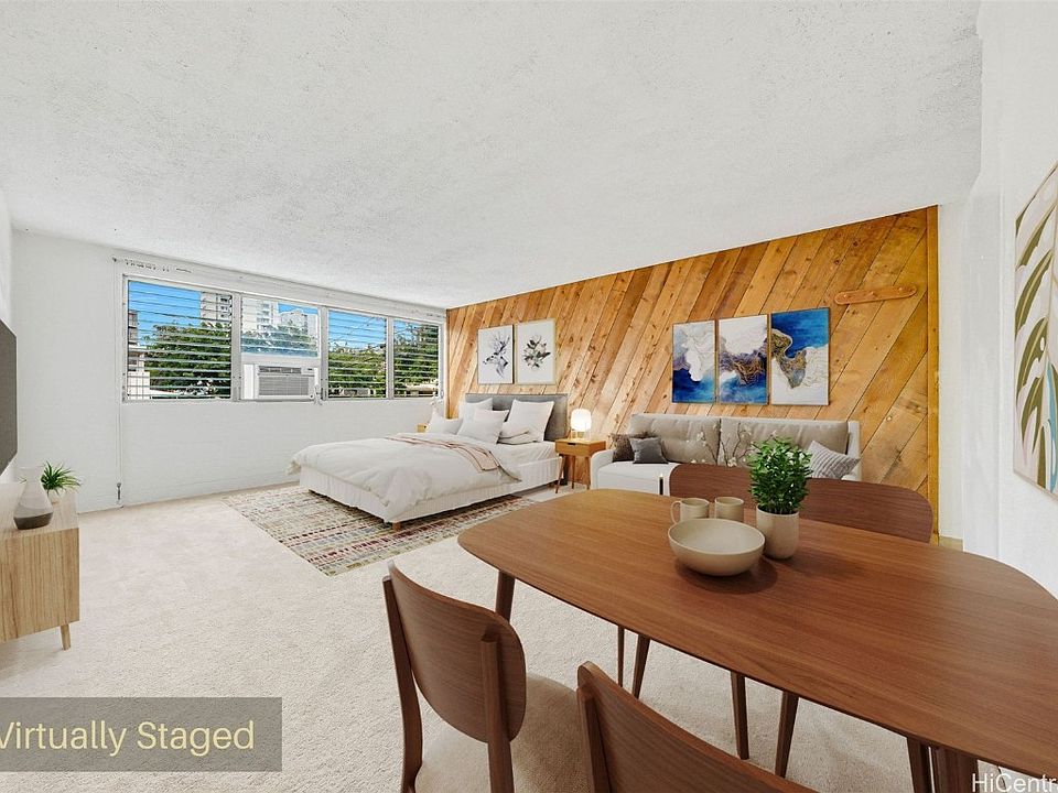 Great opportunity for your very own quaint urban oasis. This rarely available Tiare Apartments 2nd floor walk-up studio unit boasts simplicity and affordability. With a clean, uncomplicated layout and functional design, the space allows for easy customization. Freshly painted interior with new carpet. Brand new 12,000BTU window AC unit. Amenities include pool with relaxing patio area, BBQ, community laundry facilities, storage locker, and secured entrance. Affordable maintenance fees, easy access to freeway and public transportation makes this an attractive option for first-time buyers or investors seeking a cost-effective solution. Wonderfully convenient location with close proximity to Kapiolani Medical Center, Maryknoll School, Punahou School, Mid-Pacific Institute and University of Hawaii at Manoa.