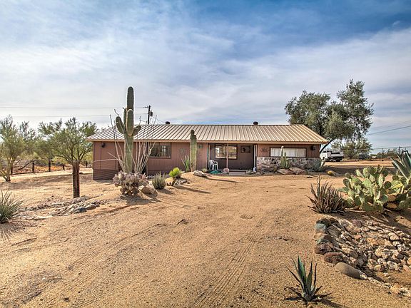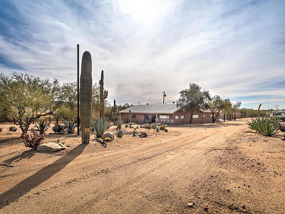 Desert Hills one acre plus Fenced Horse Property. Six 12' X 12' Stalls, Round Pen, 50' X 80' turn out and Tack Room. Metal Workshop measures 30' X 45' with 10' X 23' addition to house Private Well. Car lift conveys with property. Outstanding desert landscaping and quarter minus footing throughout for easy maintenance and cleanliness. Spectacular mountain views. Perimeter fenced with two automatic electric gates. Easy care well maintained home with carpeted covered patio for lots of outdoor living. This would make the perfect second home for any horse lover. Very close to State Land and the Maricopa Trail; ride out from your door. Paved roads all the way.