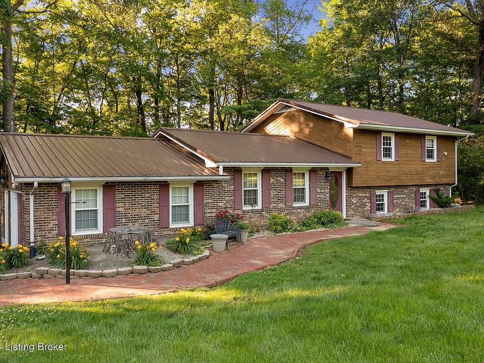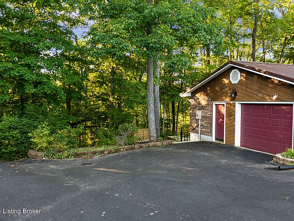 Located in a quiet cul-de-sac, this home offers a secluded location with the convenience of being in E'town, just minutes from the BG and I-65. Enjoy country living on 6.48 acres in a wooded, park-like setting complete with mature landscaping, a saltwater in-ground pool, and freshly painted deck. Inside, bathrooms and kitchen have been updated; including a custom pantry, new appliances, and engineered hardwood flooring throughout the main living areas and bedrooms. The basement has an alcove perfect for an office or bar. The home features a new roof with leaf guard on the gutters, new HVAC, new septic pump and septic alarm, and LED lighting ensuring low maintenance. Park your RV in the detached garage which has a workbench and built-in storage, as well as an attached office/storage space.