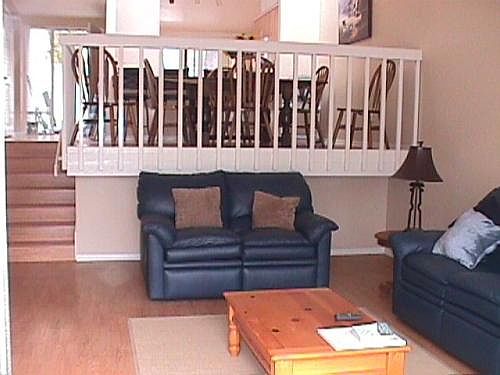 WEEKLY VACATION RENTAL. This tri-level beauty is unique and complete. Kitchen and master bathroom have been remodeled. It has games, toys, VCRs, beach necessities, and all that you will need to feel at home. Just bring your suitcase all your needs will be met. Pet friendly unit. The home offers three spacious bedrooms - a king in the master, a king in the 2nd, a queen in the third bedroom and 2 singles in the 3rd bedroom loft. A living room, dining room, a full kitchen, and two baths. There is a front patio with furniture, and a large deck with furniture and lounges off the living room for the whole family. Amenities include a barbecue, an enclosed 2 car garage, and a washer/dryer for your convenience. There are beautiful grounds for peaceful relaxation. Just walk to the center and down the walk way to the stairs to the ocean for fun. This is a gated community for privacy and security. All of nature surrounds you on 50 acres of beauty. On-Site: Gated Community, 50 Acres, Two Heated Pools, Five Tennis Courts, Playground, Jacuzzi, basketball court. Local: Golfing, Surfing, Shopping, Restaurants, Amusement Parks, Tennis, Del Mar Race Track. Permissions: Pets-OK ~ Smoking-NO ~ Children-OK. Winter rates (except holidays), $1200 per week. Summer rates, $2000 per week. Utilities, $75 per week. Move out cleaning: $150. Gate Pass: $40. Admin, $25. 10% Encinitas City TOT tax on rent(applies only to rentals less than 30 days). Max 7 people. *If you are interested in winter monthly rentals please ask for current rates. (Internet 5310753)