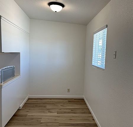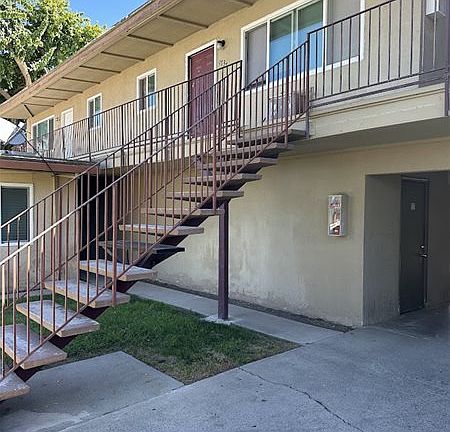 2 bedroom 1 bath upstairs apartment home with approximately 720 SQ. FT. of living space. Kitchen with laminate counter tops, laminate flooring, refrigerator and electric range. Spacious bedrooms. Bathroom with shower tub combo. Wall unit for A/C. Gas wall Furnace for heat. Tenant pays $75 per month for water/Sewer/Garbage. 1 car covered carport. New interior paint and laminate flooring throughout!