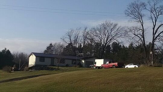 This 4 bedroom, 2 bath home with walkout basement and large attached garage is located on 16 rolling acres. Open floor plan with vaulted ceilings in kitchen, dining and living rooms. Gas fireplace in living room. Enjoy panoramic views of the park like setting.