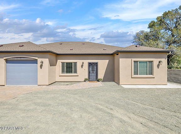 Beautiful custom home in Prescott sitting a private lot with a pavered parking pad, large storage shed, fenced yard, and covered patio. There's plenty of room for your RV or trailer on the .81-acre lot that has plenty of room to expand/build. The large kitchen offers an eat-in kitchen island with granite countertops and plank tile flooring. List of improvements since ownership include french doors off bedrooms, 5' by 74' block retaining wall with french drain, shelving unit in garage, and more. ROAD AND DRIVEWAY GRADED 6/5/2020! Some photos are virtually staged.