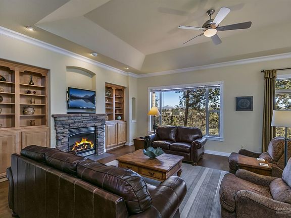 Spectacular in every way! Picture yourself basking in the beautiful sunlight streaming through your windows as you look out to capture sweeping views of Smith Rock & Historic Dry Canyon.Featuring an open floor plan w/hardwood floors,vaulted ceiling & stone fireplace, magnificent kitchen w/quartz counters & stainless appliances. Elegant master suite w/fireplace,tile shower,jetted tub,walk-in closet &private deck.Finished 3 car garage & access to trails.Don't miss your opportunity to own this private oasis.