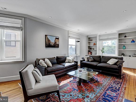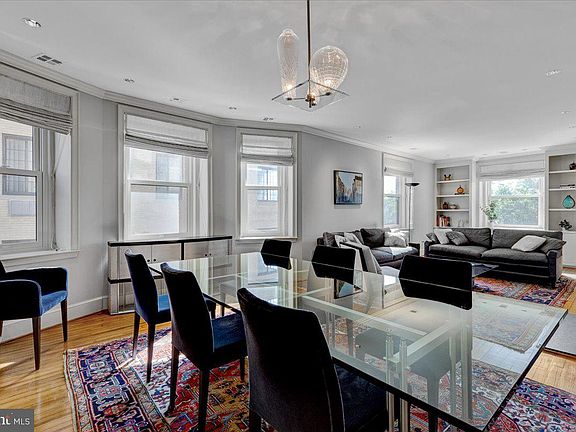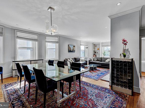 This special 2Bd/2Ba condo is in The Portsmouth, a boutique Dupont Circle Beaux Arts building. It offers beauty, flow, historic flair, and an amazing location, as well as the opportunity to add value with some of your own TLC or updates in one of DC's most coveted neighborhoods. Welcome your guests to the polished stone floors of the Portsmouth’s entryway and halls, and then into your own spacious foyer. Lovely light from many large windows and two exposures will greet you, including views over the leafy street from the living and dining areas, and from the primary suite. This well-maintained home was upgraded over time by the previous owner. It offers high quality millwork, deep window sills, built-ins, recessed lights, custom blinds, plantation shutters, and gorgeous wood floors. The kitchen has high-end cabinetry, quality appliances, stone countertops, and new tile backsplash. The dining area accommodates a large table for entertaining. Central AC/heat, in-unit W/D, good closets, fresh paint throughout much of the unit, and extra storage in the basement add convenience and comfort. Relax and entertain in the quiet, shared, back patio, with landscaping, trees, and a grill. This is an investor-friendly and pet-friendly building with only 34 residences. It is just half a block to the dog park on S Street and close to many shops, services, and the Dupont Circle Metro station. This is an As Is sale. See virtual walk-through tour. Square footage is estimated from a third party floor plan; the tax record says 1099 sqft.
