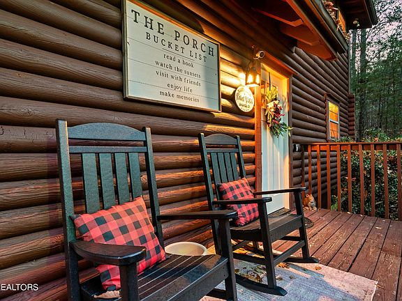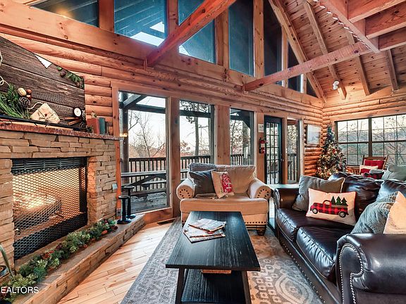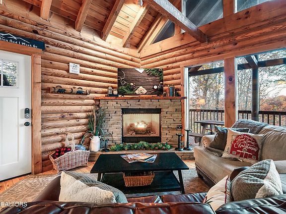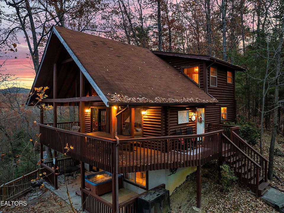 Beautifully maintained true log cabin in an ideal location! Only 9 minutes from Parkway off easy back roads, this cabin has it all: gorgeous views, huge decks, plentiful living space, level parking, and more! A successful overnight rental with over $83,000 in 2023 revenue, this cabin has been well maintained and beautifully decorated by its current owner. Situated on a private lot, guests will feel like they've escaped to the woods, while still being a short and easy drive from Pigeon Forge. On the main level you enter into the living area, with cathedral ceilings and huge windows to take in the mountain views. The kitchen flows right into the living space, and a dedicated dining area means gathering is easy! There's also a bedroom and full bath on the main level, and a generous deck for enjoying the outdoors. Upstairs is a large primary suite, with vaulted wood-beamed ceilings, full bath, and a jetted tub looking out at the trees. A cozy loft area makes for a great reading nook. Downstairs is where the fun happens! A large, well outfitted game room is full of entertainment, and the hot tub invites you out onto the back deck. The third bedroom and bathroom complete the space, with an inviting king bed. Don't miss adding this fantastic cabin to your portfolio!