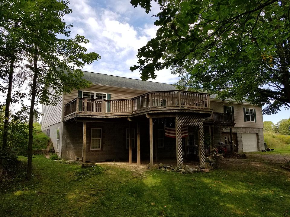 Modern, roomy home featuring 4 bedrooms, 2 baths, a slate stone fireplace, front & rear decking, full walk out basement, and 3 car detached garage...Private ''Amish Country'' location on 3+/- acres...