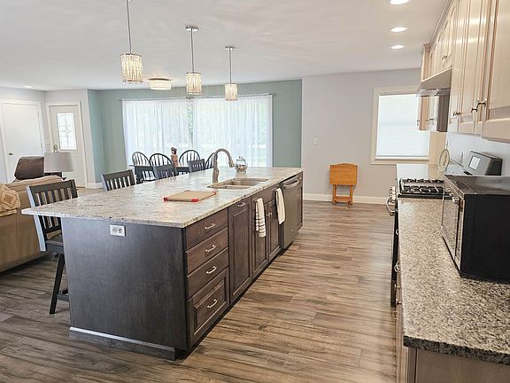 Cozy gas fireplaceModern open floor planKawkawlin riverRenovated maintenance free exteriorGranite countertopsSeparate shower and bathtubNewer flooring