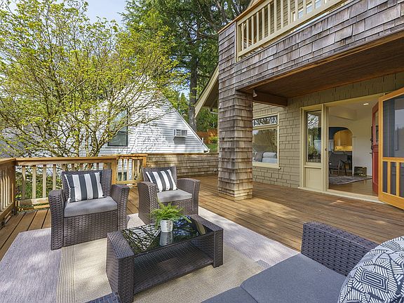 Discover easy living in this light-filled home nestled in the coveted Portland Heights neighborhood. Perched on a serene hillside, this exquisite property offers panoramic territorial views, all while being conveniently located to downtown Portland's vibrant cultural scene, renowned restaurants, and boutique shops.Tucked away on a quiet dead-end street, this home provides the perfect blend of tranquility and urban convenience. Light and bright interior that highlights the elegant craftmanship which includes hardwood floors, wainscoting, high ceilings, archway and built ins, as well as modern upgrades. Beautifully remodeled kitchen with sleek countertops and gas appliances. Brand-new laundry room, complete with state-of-the-art appliances and functional storage solutions! Step outside onto the spacious decks that are bathed in southern exposure, perfect for entertaining or just relaxing! With multiple living areas, including a family room, living room, formal dining room and office there's plenty of space for the modern lifestyle! [Home Energy Score = 1. HES Report at https://rpt.greenbuildingregistry.com/hes/OR10089561]
