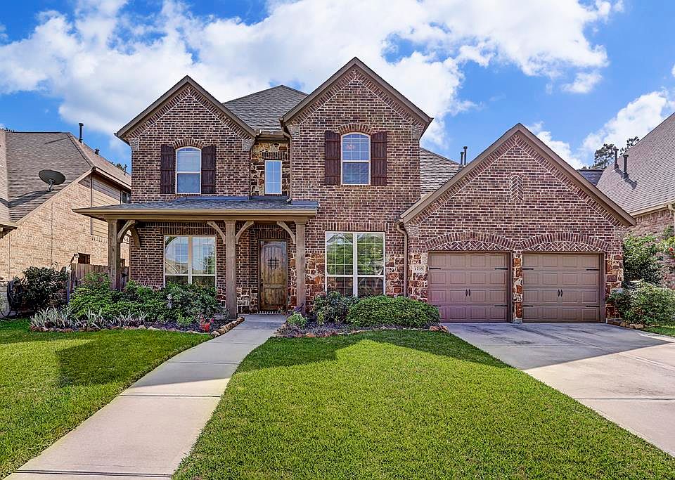 Popular and reputable Darling construction in the master planned community of Spring Trails. Excellent curb appeal featuring attractive masonry details and a charming covered front porch. Gorgeous handscraped, dark stained, wide plank hardwood flooring throughout the living areas on the main level. The kitchen features a large island for entertaining, granite counters and stainless appliances. Game room and media room upstairs. Backs to a serene greenbelt. Walk to Broadway Elementary.