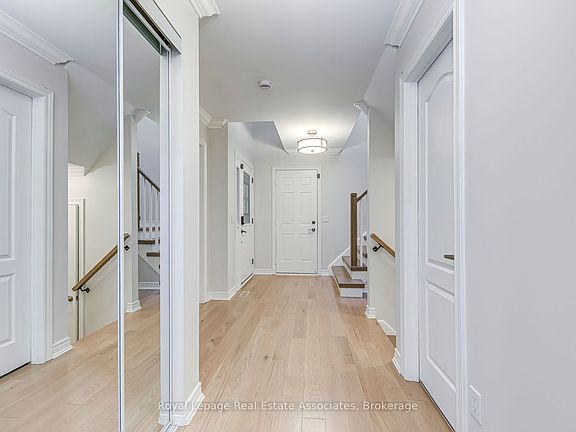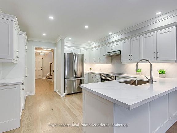 End-unit Executive Townhome located in the exclusive 24-home enclave of the Town Manors of Sawmill Valley, a well-maintained complex backing onto the Sawmill Valley Trail. This is the largest model, offering over 2,300 sq ft of living space plus a finished walk-out basement, and has been completely renovated from top to bottom.The home features 3 spacious bedrooms, 4 bathrooms, a double-car garage, and an open-concept main floor ideal for everyday living and entertaining. The kitchen walks out to a private deck, while the family room with a gas fireplace provides a warm and inviting space to relax.The primary suite is a true retreat with a 5-piece ensuite. The finished walk-out basement includes an additional bedroom and 3-piece bathroom, perfect for guests, a home office, or extended family.Landscaping and snow shoveling to the front door are included in the maintenance of the complex, offering low-maintenance, worry-free living. Enjoy space, privacy, and an unbeatable location close to trails, transit, shopping, close to University of Toronto (Mississauga campus), and Credit Valley Hospital. Book your private showing today.