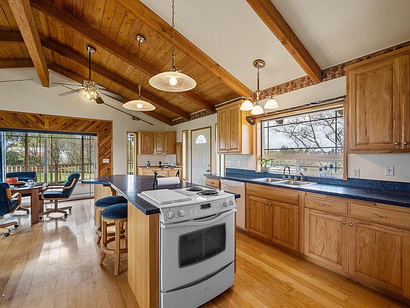 Country views conveniently close to city shops & services. Newer 2 bdrm/2 bath home has fabulous 1320 sqft covered deck & is right across the road from Trask River (effectively riverfront!) Relax on the deck w/beverage of choice, or saunter to the river, take a seat & throw in a fishing line! Maybe slip your kayak down the bank & float among the waterfowl. Metal roof, shed, circular driveway all bonuses. Inside, solid surface counter tops & cooking island please the chef, & open floor plan keeps everyone in the conversation. 2 sliders to deck. Handicapped ramp. You'll never want to leave!