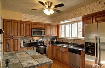 This brick, 3 bedroom, 3 bath home comes with an amazing kitchen which was updated in '09 with granite counter tops, cherry finished cabinets, stainless steel appliances & a tile back splash. You'll find lots of storage space & a convenient lazy susan cabinet in the corner. The baths are also beautifully updated. You can relax in the jetted tub in the hall bath, or in the shower in the master bath which has extra body jets. The finished lower level also has another full bath, a bonus room or office as well as a spacious family room with a walk out to the wooded back yard. This home has 1200 sq. ft. on the main floor (county records) and approximately 700 sq. ft. more in the lower level. A one year home warranty is also offered. This home is located in the desirable Seckman School District.