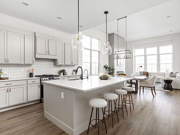 New construction by Estridge features 4 bedrooms with the owner's suite on the main level. Large welcoming front porch flows into the open concept main floor with cozy great room with gas fireplace and gourmet eat in kitchen with large island, quartz countertops and SS appliances. Main floor laundry enters into the owner's suite with walk in closet with built in shelves, garden tub, tile shower and double sinks. Private study with glass doors off the mudroom entry. Upstairs you will find 3 bedrooms and a loft. Finished lower level with full bathroom and plenty of storage or make an extra bedroom. FULL LAWN IRRIGATION! Check out all the amenities coming soon including pool, splash pad, concert pavilion, stocked pond with a dock and sports courts.